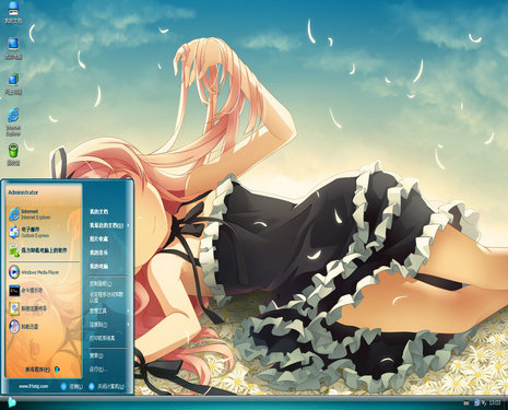 動漫美少女電腦主題背景設(shè)計得十分唯美,超美的美少女與藍天完美結(jié)合,盡顯了飄逸之感!