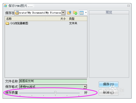8、保存配置,保存配置的對(duì)話框設(shè)置好保存的文件名和質(zhì)量,注意調(diào)整