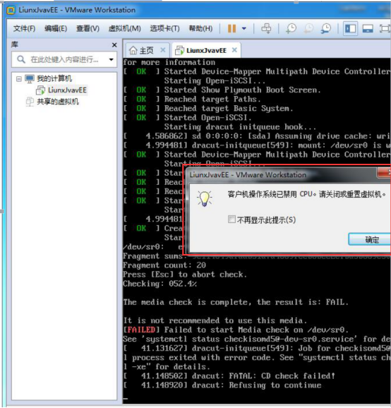 這種安裝在第一次的時候會出現(xiàn)如圖所示情況,該情況根據(jù)自測,只出現(xiàn)在VMware Workstation 版本為11的時候有這種情。先點擊確定,虛擬機(jī)會關(guān)閉.