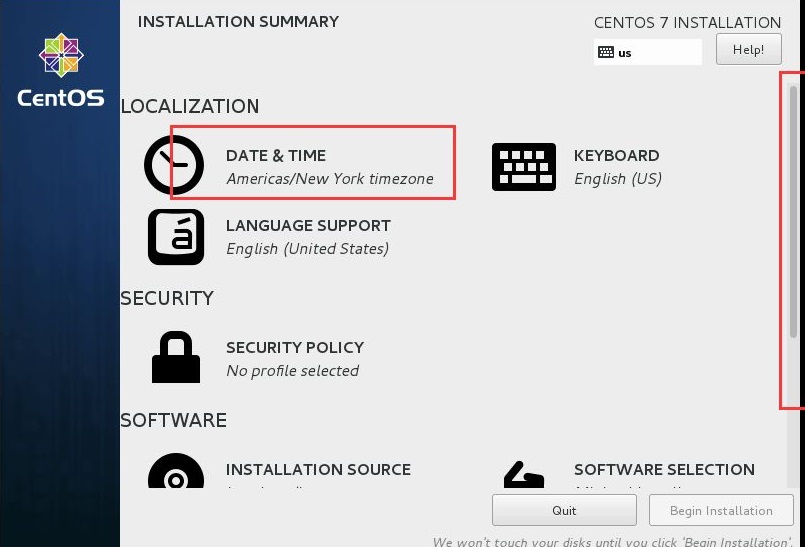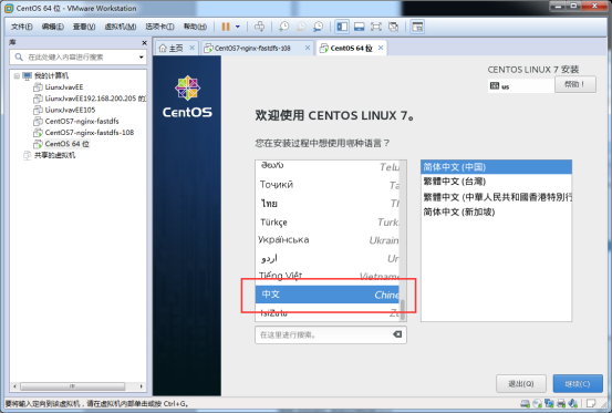 首先我們這里先選的是語言,如果是第一次安裝,建議先安裝中文版的熟悉一下centos7的配置,之后再選擇英文的進(jìn)行實踐。這里先介紹中文的吧。首次進(jìn)入界面看到?jīng)]有中文,我們需要鼠標(biāo)吧、點擊進(jìn)去,下拉手邊選擇中文。