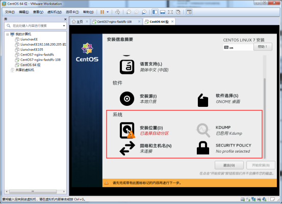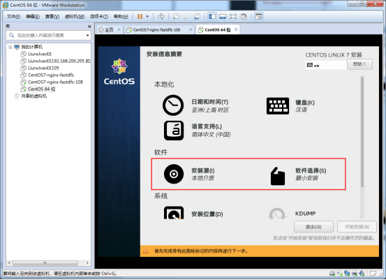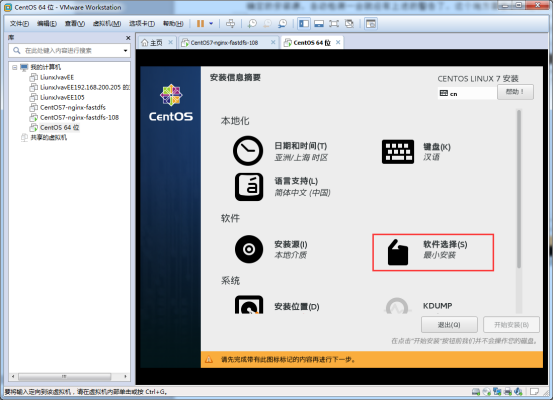 我們先來看一哈安裝源,安裝源一般是自動檢測的。在我們選擇鏡像文件的時候就已經(jīng)確定的安裝源,自動檢測一會就沒有上述的警告了,這個地方需要改的是軟件選擇。