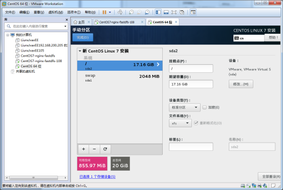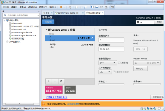 上面內(nèi)存填17.16GB,這邊得看自己設(shè)置的虛擬機(jī)內(nèi)存。我這里總空間比參考設(shè)置分區(qū)的圖例少0.48GB容量,所以就直接這樣設(shè)置了。