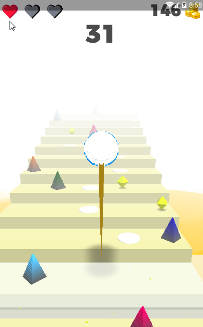 1、樓梯上有許多阻礙物,需要玩家控制小球進(jìn)行躲開(kāi),需要玩家具有快速的反應(yīng)能力。2、跳躍路途中會(huì)出現(xiàn)大量的閃亮金幣,玩家應(yīng)該讓小球跳躍前進(jìn)不斷的收集更多的金幣。