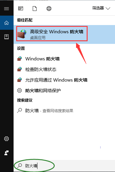 打開win10的防火墻,可以通過右鍵點(diǎn)擊開始菜單,選擇“搜索”,然后輸入“防火墻”,然后點(diǎn)擊即可打開,如下圖所示: