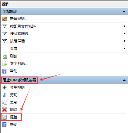 我們找到剛剛建立的“阻止IDM激活服務(wù)器”,點(diǎn)擊“屬性”,