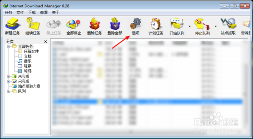 Internet Download Manager(IDM)下載目錄修改打開下載軟件,點(diǎn)擊這個(gè)【選項(xiàng)】。