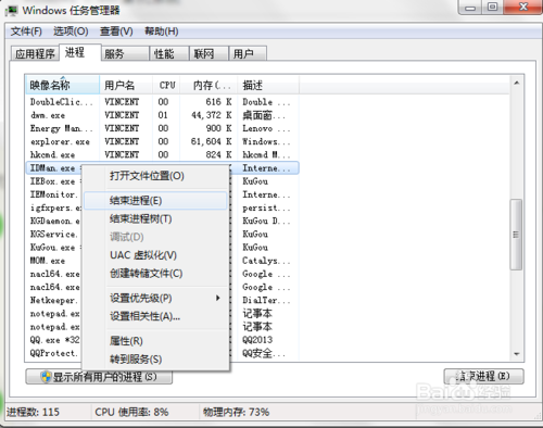 打開任務(wù)管理器,結(jié)束IDM所有進(jìn)程和后臺(tái)程序,一定要將所有IDM的程序進(jìn)程結(jié)束