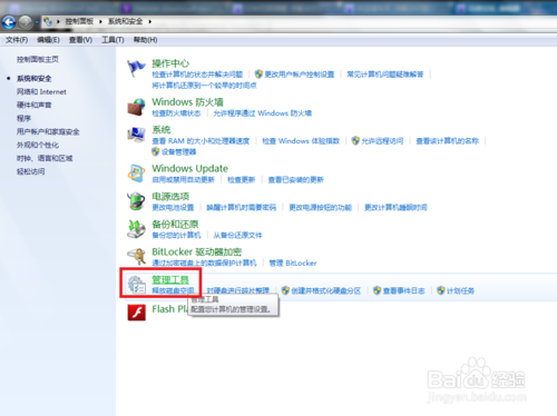 點(diǎn)擊開始菜單-控制面板-系統(tǒng)安全-管理工具