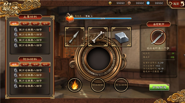 玩家前往杭州可開啟鍛造系統(tǒng),可放入指定的配方材料后,開始進行游戲。