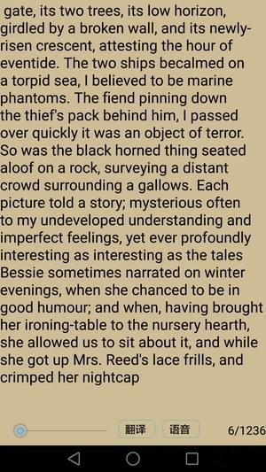 豐富的圖書資源,整理上萬本英語圖書,包含人物傳記、經(jīng)典名著、書蟲系列、兒童讀物、長篇小說、短篇小說等等,另外,書友翻譯上傳了唐家三少、天蠶土豆等的經(jīng)典武俠小說,還有冰與火之歌系列、暮光之城、魔界系列等等知名書籍。支持一鍵加入書架,一鍵加入書簽,書架和書簽方便管理和查看,支持離線閱讀,所有圖書免費閱讀和下載。