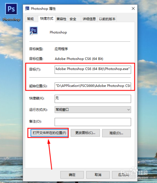 打開ps6的安裝目錄路徑 如果不知道可以單擊桌面的快捷鍵--》屬性 --》打開文件位置即可