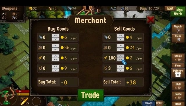 會有商人隨機地進入村莊,和你進行交易,交易可以說是最主要的金幣來源,