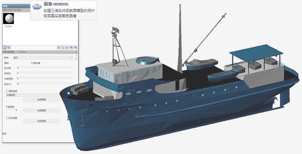 渲染提供了一個(gè)逼真的陰影三維實(shí)體或表面模型,提高可視化。您可以為3D模型定義材料,增加光亮、顛簸、和物體表面的透明度,給他們一個(gè)逼真的外觀。