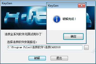 2、選擇軟件安裝目錄【C:\Program Files\浩辰軟件\浩辰CAD2018】,點(diǎn)擊破解即可;