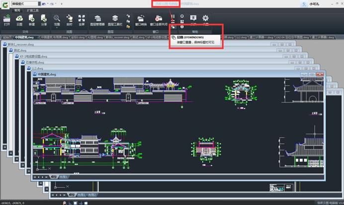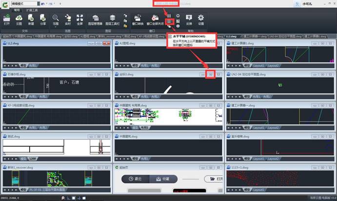 浩辰云圖電腦版安裝包小,運(yùn)行速度快,同時(shí)打開好幾張圖紙進(jìn)行查看都不是問題,而且在浩辰云圖電腦版還分為一般窗口查看、垂直平鋪、水平平鋪和層疊模式查看,如下圖: