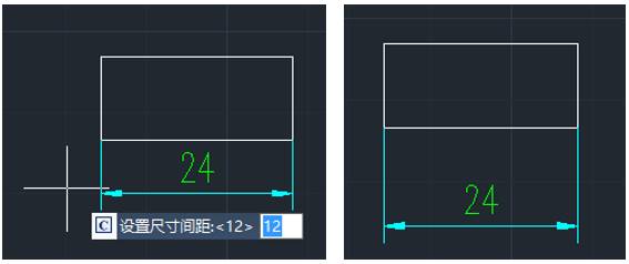 同一方向上水平標(biāo)注和垂直標(biāo)注整理成等距離格式。在浩辰CAD機(jī)械軟件中調(diào)用【浩辰機(jī)械(M)】→【尺寸標(biāo)注(D)】→【編輯標(biāo)注(E)】→【單向標(biāo)注整理(S)】或輸入“GMSINGLEVIEWDIM”命令,就會出現(xiàn)命令提示:“選擇對象”,選擇尺寸對象并回車。然后會出現(xiàn)命令提示:“指定尺寸偏移起點(diǎn),或<不改變>:[當(dāng)前尺寸間距<5>重新設(shè)置(S)]”,指定尺寸偏移點(diǎn)。輸入 S 可設(shè)置尺寸間距值。指定引出線位置,回車表示不改變引出線位置。將標(biāo)注沿同一方向拉伸。如下圖所示。