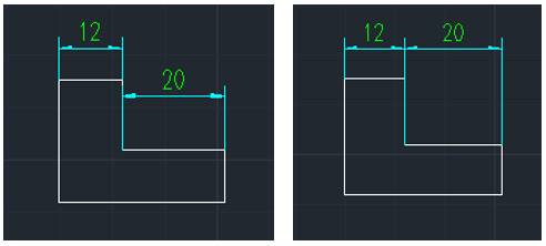 在浩辰CAD機(jī)械軟件中調(diào)用【浩辰機(jī)械(M)】→【尺寸標(biāo)注(D)】→【編輯標(biāo)注(E)】→【檢查標(biāo)注(C)】,就會出現(xiàn)命令提示:“輸入選項(xiàng)”,然后選擇對象,最后會實(shí)現(xiàn)如下圖的功能對比。