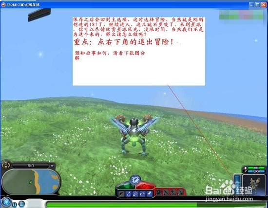 4、特別注意!史前生物是沒法討好的。不過,如果你注意地找,可以找到界于史前生物與一般生物之間的生物,它們的血量大得嚇人!我就找到了一個(gè)血量為255的大怪,那大怪手上兩只大大的牙輪,酷必了!請(qǐng)注意,一但找到這樣的怪,可別打死他!立馬去討好它!因?yàn)槟阒灰苡懞盟粋€(gè),基因立馬到手。不但如此,討好完了,請(qǐng)?jiān)俅斡懞盟ㄈ绻呀M滿了人,請(qǐng)?zhí)呷ヒ粋€(gè)),這樣它就會(huì)組到你的同伴中,有它做幫手,走到哪兒也風(fēng)光??!誰還有膽招你啊。我曾試著找到二個(gè)以上的這種生物,但找了一二小時(shí)沒能找到第二個(gè),是不是只有一個(gè)呢……要是有三個(gè),那可就真牛了,殺遍天下無敵手?。ü烙?jì)可以直接硬殺史前生物了)……