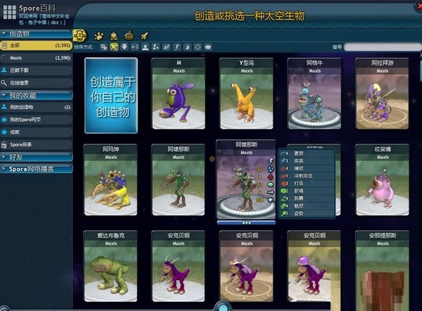 evoadvantage 創(chuàng)建新生物時(shí)輸入可從Sporepedia中任選一種動(dòng)物