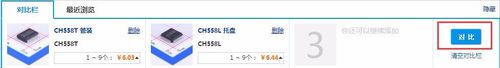點擊對比按鈕,添加到對比框內(nèi),并找到其他需要的元器件類型,同樣點擊對比按鈕,加入到對比框。