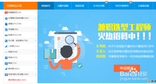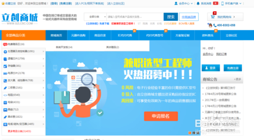 進入商城主界面,在界面左邊找到類型上“全部商品分類”列表,從中找到你想要的元器件類別