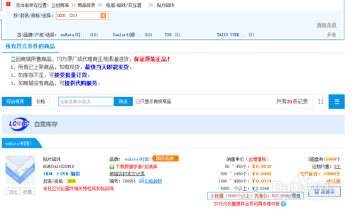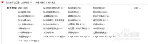 比如搜索貼片電阻,則會彈出相關的搜索信息,在彈出的界面中找到你想要的類型