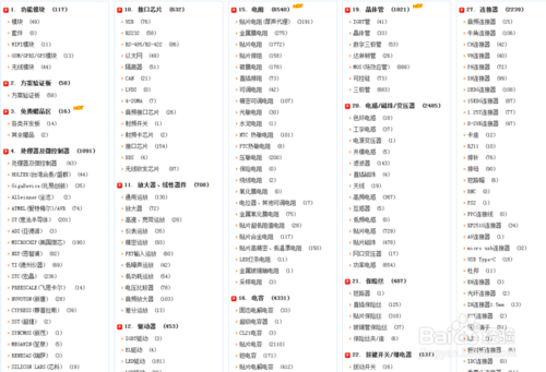 如果沒有找到則點擊列表中最后一行的“更多商品分類按鈕”,彈出所有的商品分類信息,在如下圖中,找到你想要的元器件類型。