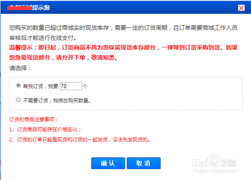 選擇購買數(shù)量超過商城當前的庫存數(shù)量時,會有提示框彈出進行提示,此時你需要再次確定是否需要這么多的元器件數(shù)量。