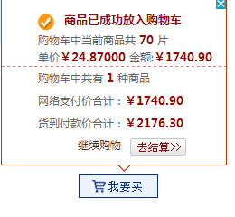 二次確認數(shù)量后會有提示已放入購物車等待結算