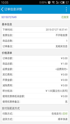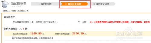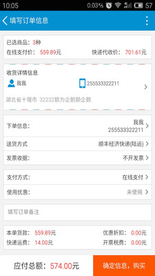 然后在填寫訂單界面中,填寫好發(fā)貨信息和快遞方式等內(nèi)容,然后點擊提交按鈕