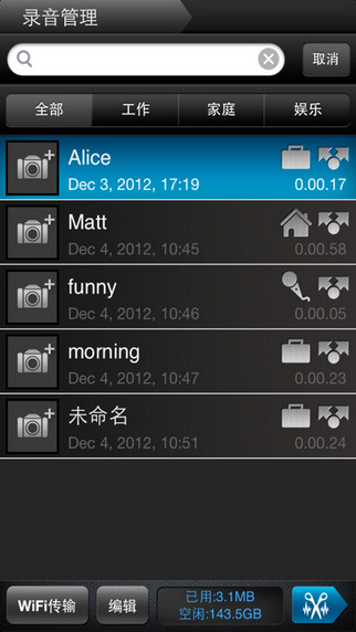 易于回放:支持Airplay,可使用藍(lán)牙音箱回放,0.5,1.5, 2倍變速播放,。快進(jìn),快退,循環(huán)播放控制易于管理:從標(biāo)記點(diǎn)列表中選擇標(biāo)記點(diǎn)可以快速定位及重聽(tīng),可以給標(biāo)記附加圖片和文字說(shuō)明,錄音可分類管理,可以給每個(gè)錄音附加圖片和文字說(shuō)明,除了錄音時(shí)增加標(biāo)記點(diǎn),也可在錄音完成后增加標(biāo)記點(diǎn)和注釋。