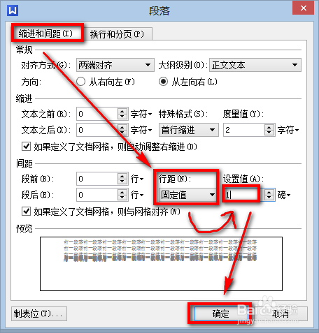 在段落窗口中縮進(jìn)和間距——行距(設(shè)為固定值)