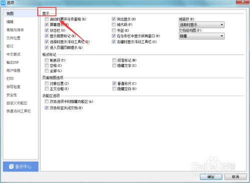 6、點(diǎn)擊視圖選項(xiàng),在其設(shè)置界面內(nèi)找到顯示選項(xiàng),如圖所示: