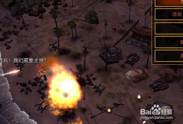 主要攻略:開始只有一個(gè)兵廠,有一些坦克。提防敵人(隱形)來(lái)襲基地。用美國(guó)兵用閃光彈滅了一路上屋里的敵軍??梢陨?jí)后有飛行員造。將坦克升到三星級(jí)吧?。?!注意探地雷和隱形炸彈,還有隱形的反抗軍和火箭兵??梢杂谜T敵的方法,優(yōu)先打98式坦克和防空車!將軍隊(duì)帶到右邊的海岸,再占增強(qiáng)形機(jī)坪。就會(huì)有源源不斷的M1A2用了??!YES??!之后再攻位于左上角的GLA基地!我是主要用超武攻的!!占機(jī)坪后小心山上的兩個(gè)遠(yuǎn)程炮!