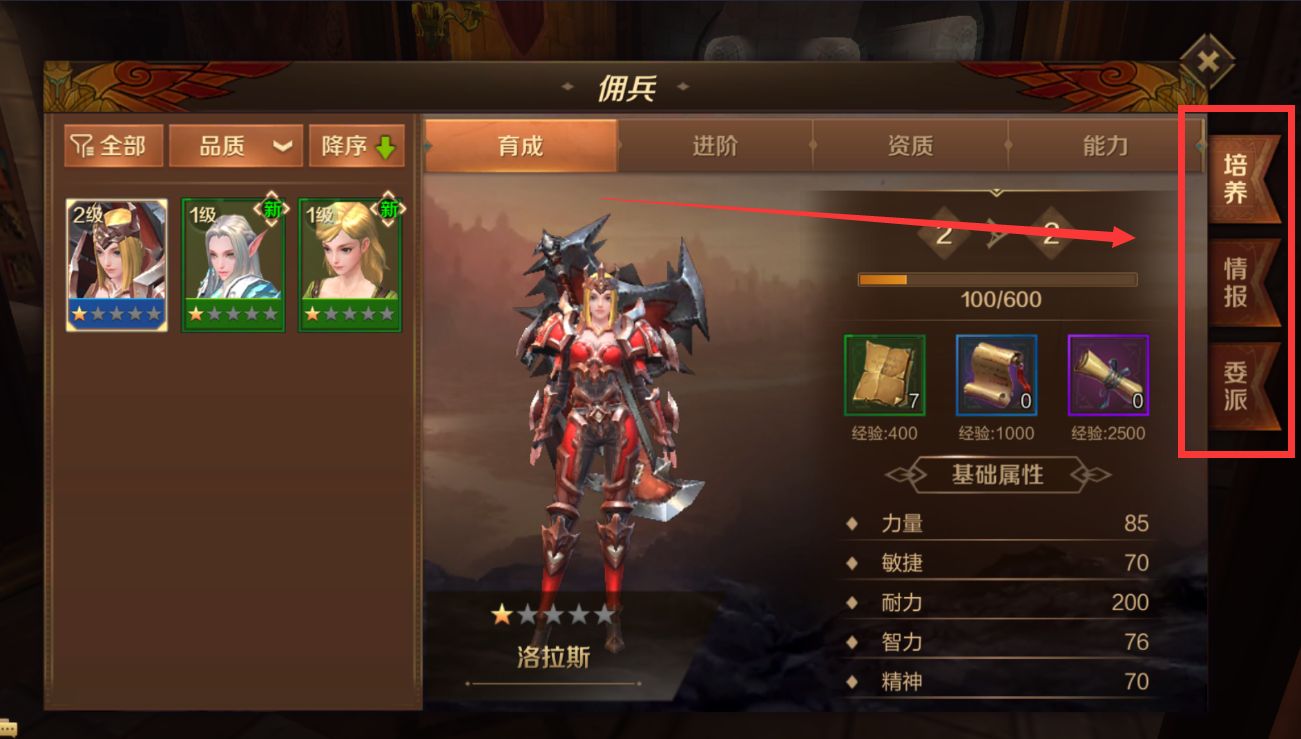 查看傭兵當(dāng)前的資質(zhì)和培養(yǎng)傭兵資質(zhì),資質(zhì)越高,對應(yīng)的屬性成長值越高。
