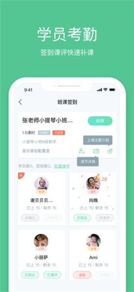學員簽到:以當日課節(jié)為單位,即時查看學員到課詳情。