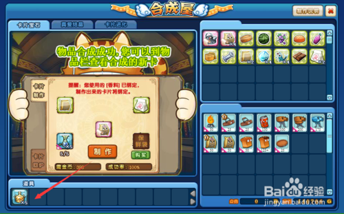 6、將綁定的材料放置完成后,我們就可以直接點(diǎn)擊制作,對(duì)材料進(jìn)行消耗,制作出來(lái)我們想要獲得的道具,這樣材料就被消耗解除綁定。