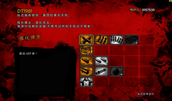 手槍,這是主角自帶的遠程武器,這武器升級方案是均衡分配,每個功能都升級1到兩點即可,也不要太多的點,留給其他的武器。前期作為主要攻擊武器,到了后期用處不大,偶爾做為主武器彈藥不夠的時候臨時救急用。
