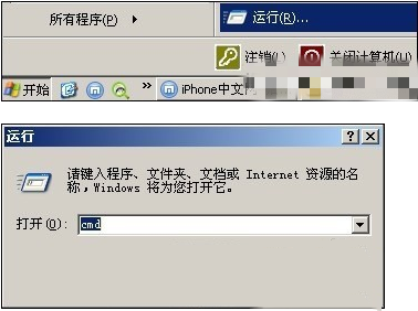 正確進入DFU恢復(fù)模式后,你需要打開命令行窗口,在“開始”中打開“運行”輸入CMD,確定。