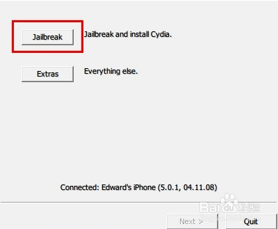 5、點擊“jailbreak”,選擇“Install Cydia”,單擊“Next”。