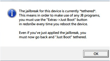 彈出此對話框證明越獄成功,點擊OK關(guān)閉