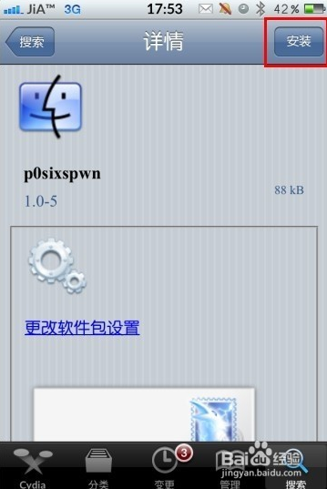 等待數(shù)據(jù)更新完畢之后,搜索“p0sixspwn”,之后安裝即可,自此不完美越獄升級為完美越獄了