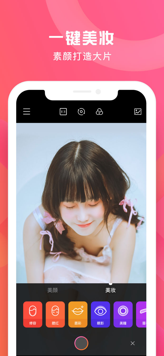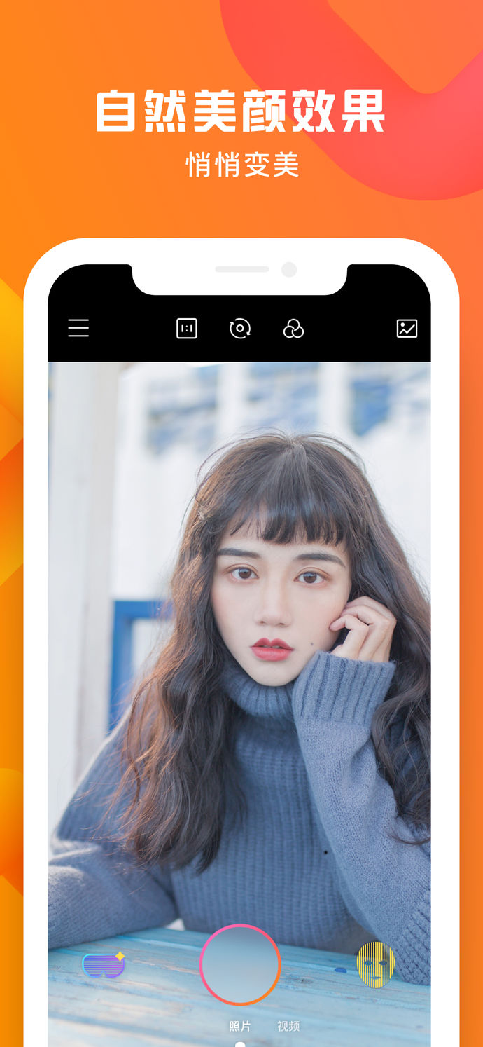 自拍 :一鍵讓你的肌膚瞬間完美無暇!默認(rèn)傻瓜式操作,一鍵選擇不同美顏級別,為您量身打造獨(dú)有的美顏效果! 還能磨皮瘦臉讓你拍出嫩白肌膚、尖俏臉美顏效果 采用智能自動人臉識別技術(shù)讓你的皮膚和頭發(fā)細(xì)節(jié)美顏效果更完美。豐富的濾鏡效果,讓照片更有格調(diào),帶你輕松駕馭各種自拍風(fēng)格!自動妝容:素顏自拍即可體驗超服帖妝容瞬間呈現(xiàn)。honey、性感、優(yōu)雅等妝容感隨心換!