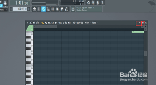 點擊第三個按鈕,在左上方的屬性欄中顯示其名稱為“查看鋼琴窗”,快捷鍵為“F7”。在出現(xiàn)的鋼琴鍵窗口中我們可以自由的縮放其大小。詳細的操作見下圖: