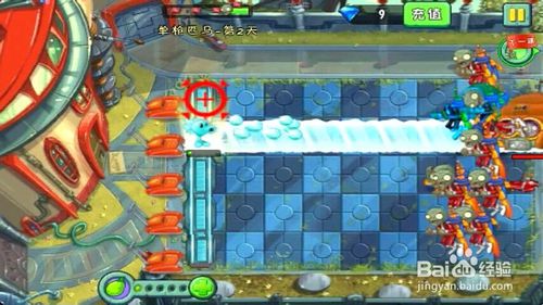 3、植物大戰(zhàn)僵尸2未來(lái)世界太陽(yáng)風(fēng)暴第3天獲星過(guò)關(guān)攻略種植冰西瓜投手。埋置地雷。
