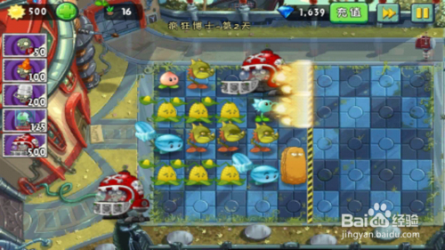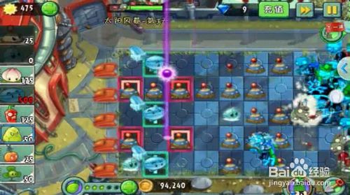 4、植物大戰(zhàn)僵尸2未來(lái)世界太陽(yáng)風(fēng)暴第3天獲星過(guò)關(guān)攻略對(duì)地雷使用能量豆,進(jìn)行攻勢(shì)布雷。消滅二級(jí)僵尸。