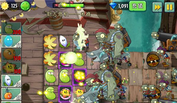 2、植物大戰(zhàn)僵尸2未來(lái)世界太陽(yáng)風(fēng)暴第3天獲星過(guò)關(guān)攻略等待陽(yáng)光變?yōu)檎嬲年?yáng)光后再收集。