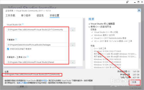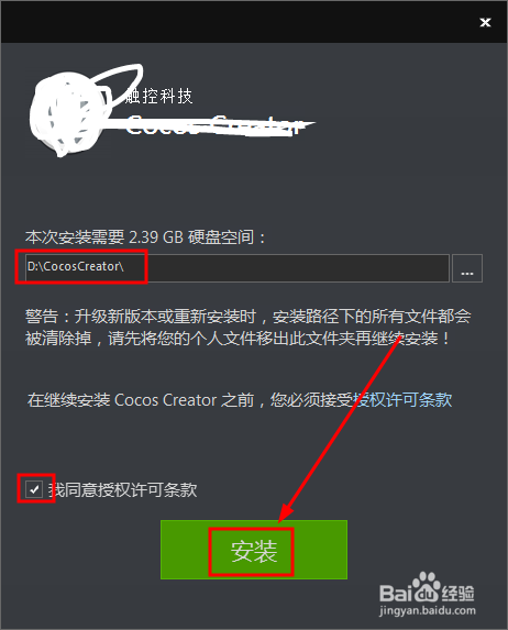 打開安裝向?qū)Ы缑妫x擇安裝位置文件夾目錄,然后勾選同意選項(xiàng)就可以點(diǎn)擊安裝按鈕了