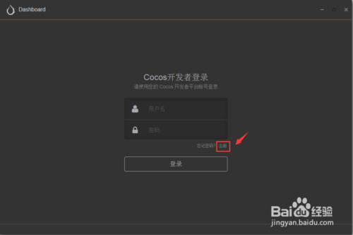 如果之前沒有 Cocos 開發(fā)者帳號,您可以使用登錄界面中的 注冊 按鈕前往 Cocos 開發(fā)者中心進(jìn)行注冊。