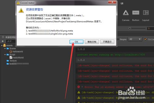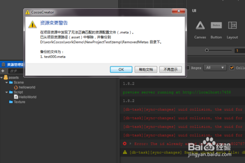 解決cocos creator編輯器uuid collision的問題在使用cocos creator做開發(fā)的過程中,就是 UUID collision,然后文件夾里面的文件都看不到了,就是樹狀目錄結(jié)構(gòu)都沒有子目錄,后面經(jīng)過多方面的調(diào)試和思考,終于發(fā)現(xiàn)了幾個有點(diǎn)用處的解決方案,就分享給各位吧: